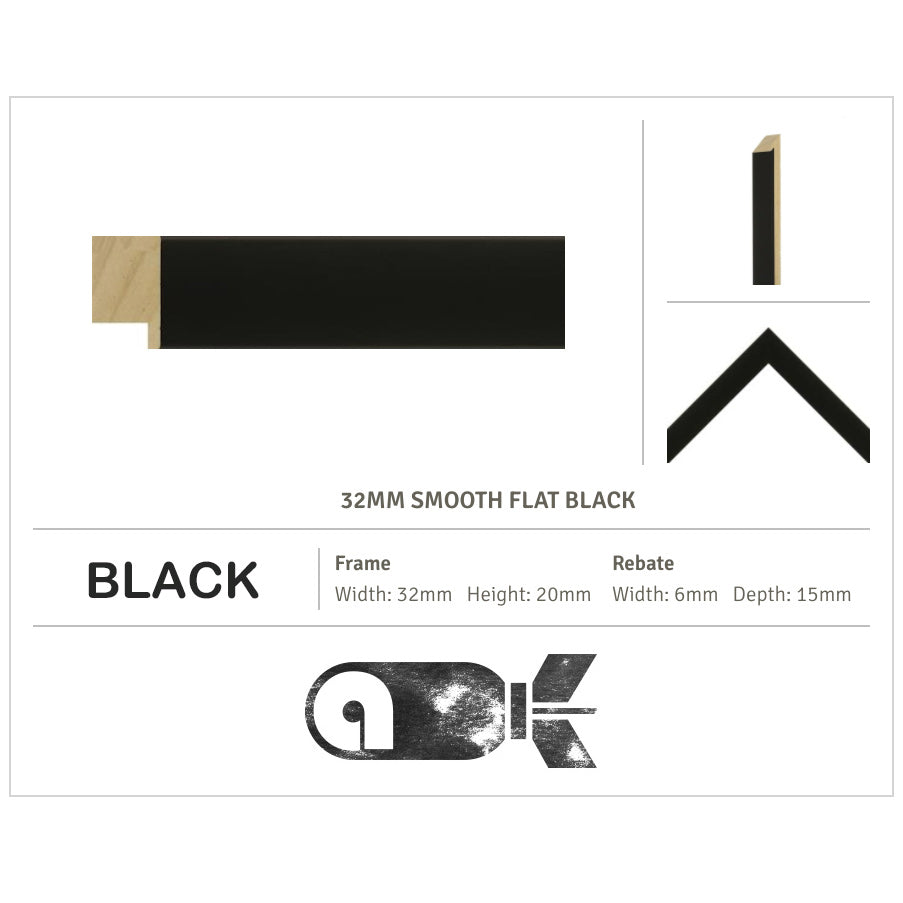 We can take all the hassle out of displaying your new art print if you choose our pre framed option. Our frames are hand selected and are made of beautiful solid wood with a flat 32mm frame surround and were hand selected for the high quality, contemporary look.